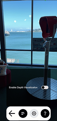 ![]() | The depth scene demonstrates how to get the depth buffer and display it as an overlay in the scene. Open DepthDisplay.unity in the Depth folder to try it out. |